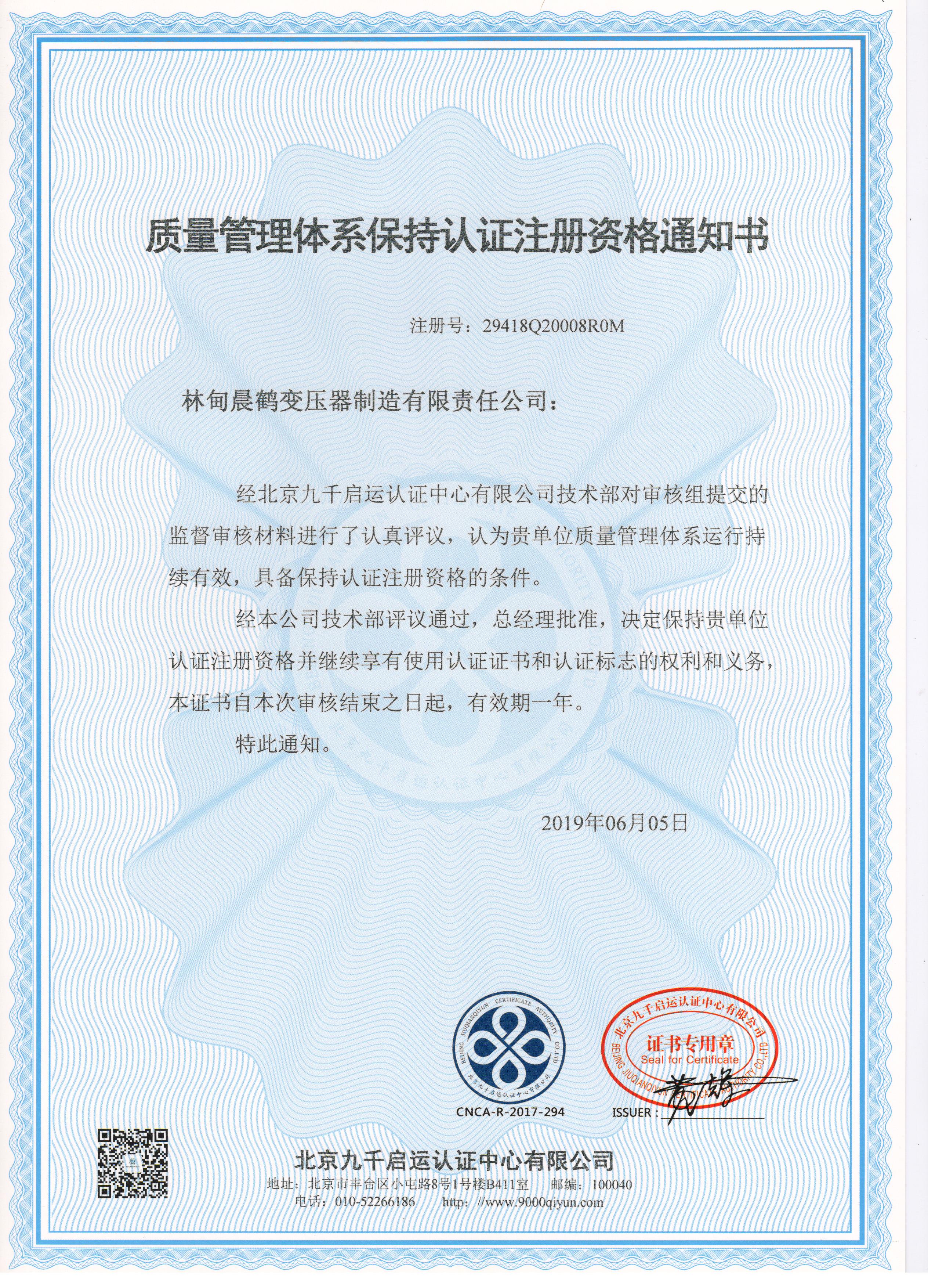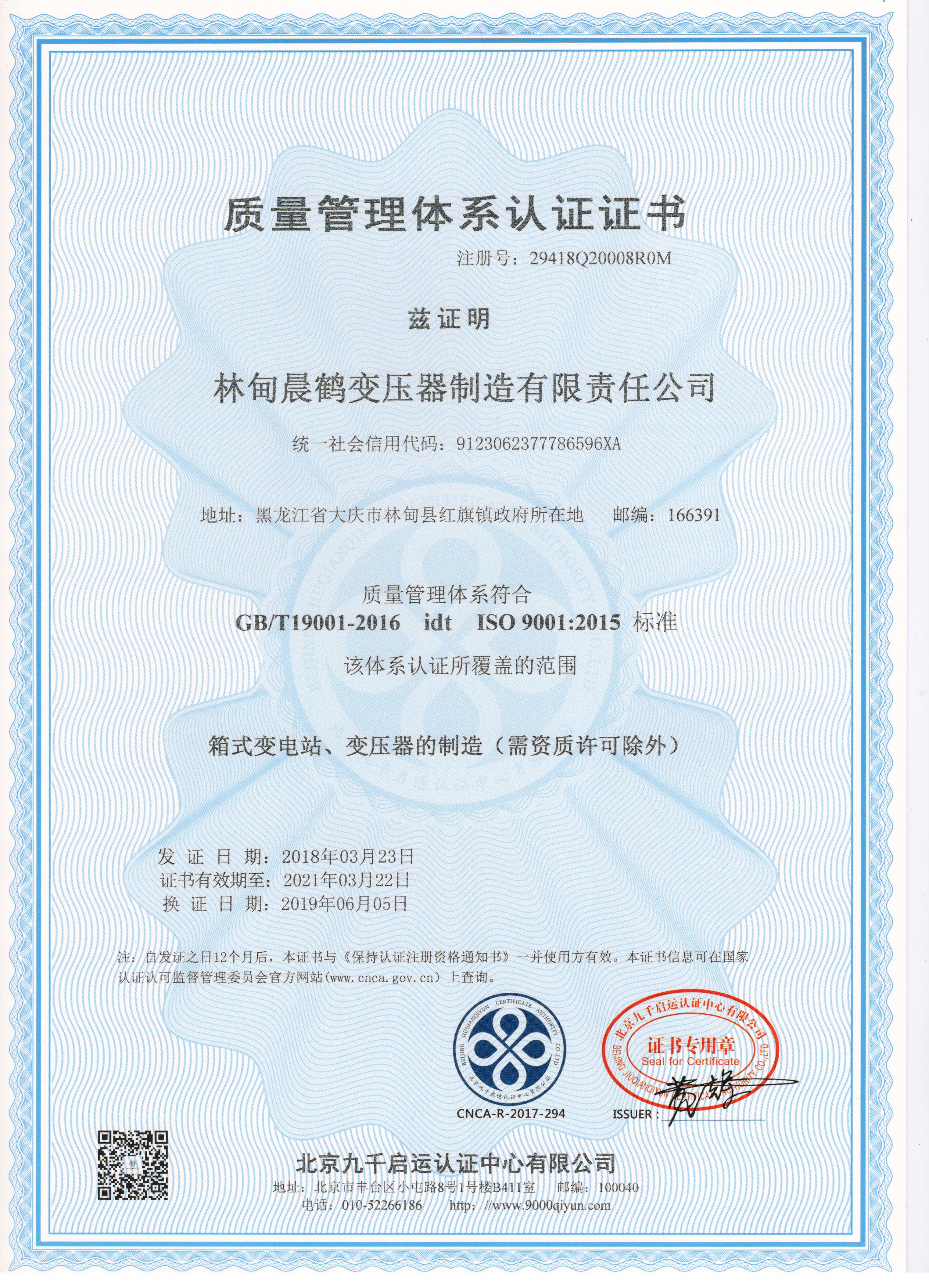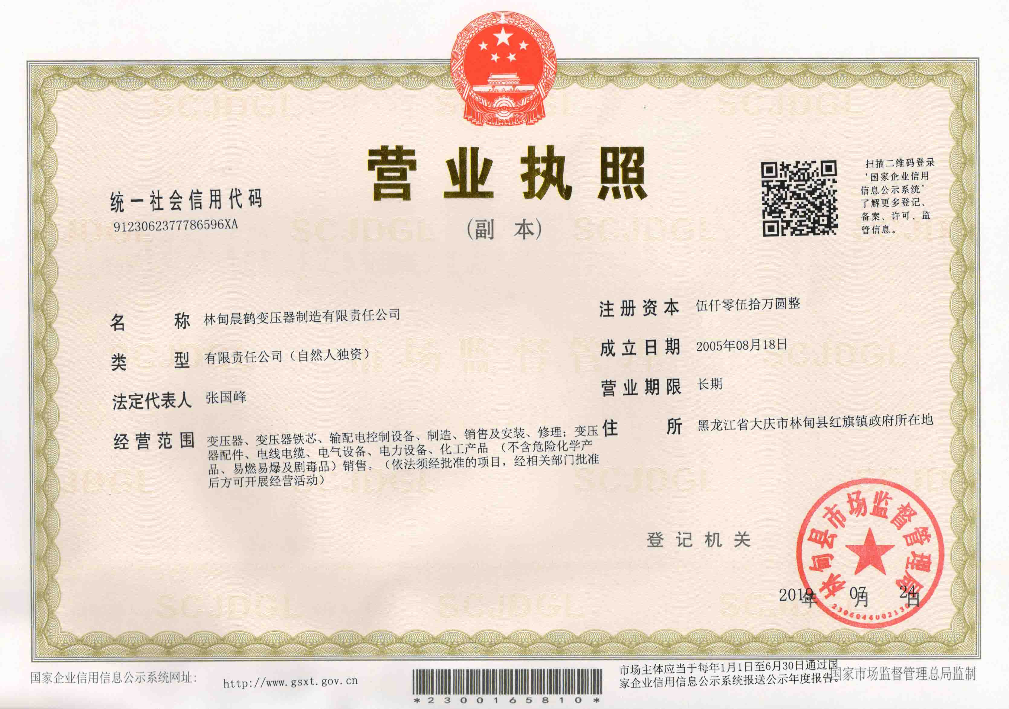 大慶市林甸晨鶴變壓器制造有限責任公司是一家從事研發、生產、銷售及服務為一體的變壓器生產廠家。設備完善、技術力量雄厚,已取得質量管理體系認證證書。...